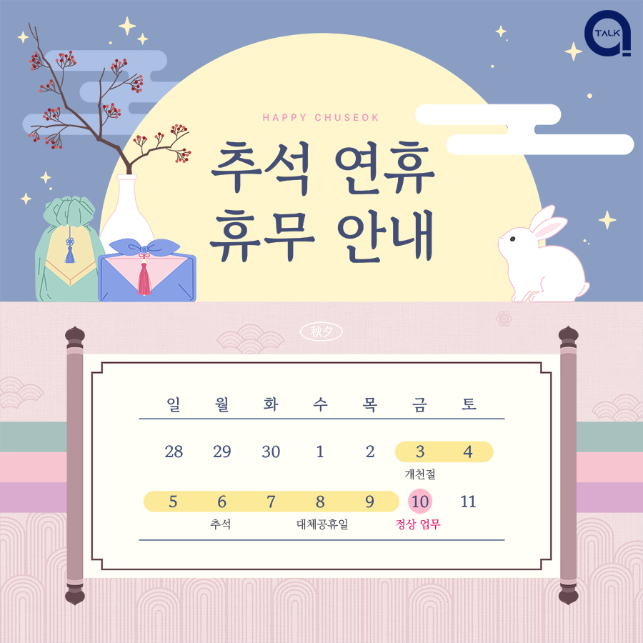 [고객센터 휴무일] 2025년 10월 3일(금) ~ 10월 9일(목)