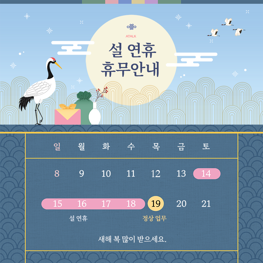 설 연휴를 맞아 고객센터 휴무 일정을 아래와 같이 안내드립니다.